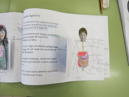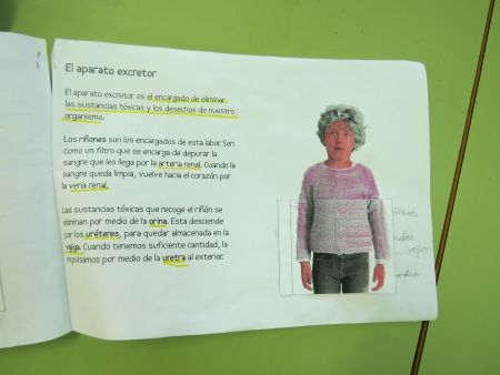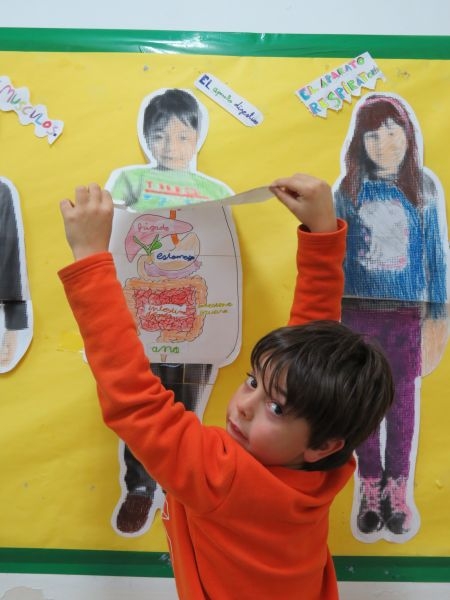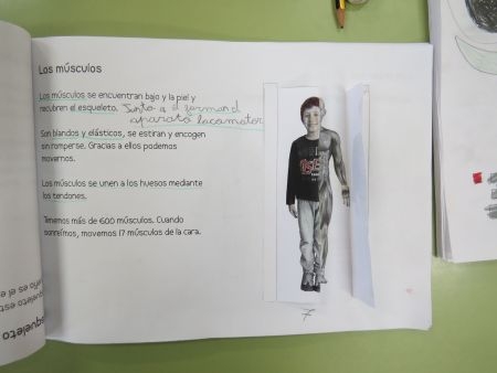 El CRA troballa Conoximento del medio (Ciencias socials y naturals en LOMCE) per proyetos, asinas que nos toca fernos es materials. Per un canto ye fayena, pero per atro, puez diseñar cosas que s’achustan a lo que quiers fer tú, a la mida d’es borches tuyos, y sin tener que tragar con libros de testo mediocres. Ta’l tema del cuerpo humano hen puisto fer uns cuadernillos y un mural granizo estando es borches es protagonistas. Encara m’habría feto goi troballarlo una mica més, pero el tiempo da ta lo que da. ¡A viyer que nos deparan es siguiens trimestres! 🙂